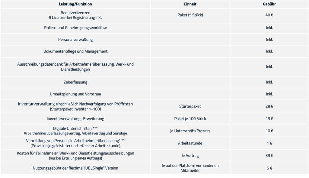 **FlexHUB IT Solutions GmbH reserves the right to adjust the prices for marketing purposes for new customers for a limited period of time. Unless otherwise stated, existing customers are not entitled to take advantage of the promotional prices or to participate in the promotions. **In the case of a unilateral request, the costs incurred are to be borne by the requester. If the digital signature of the contracts is requested by both contracting parties, the costs will be shared. Also due in the event of cancellation once signed by one of the contracting parties. If the contract is cancelled, the costs shall be borne by the contracting party initiating the cancellation.