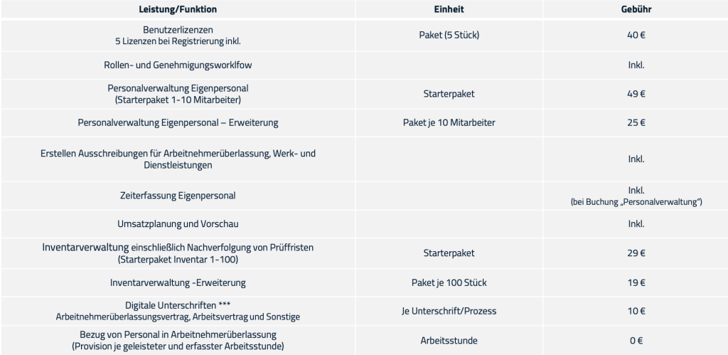 * The aforementioned flat rate decreases with increasing utilisation or working hours booked and invoiced via the platform on the basis of the recorded services from the previous month, of the personnel service provider/rental company/contractor, according to the following scale: